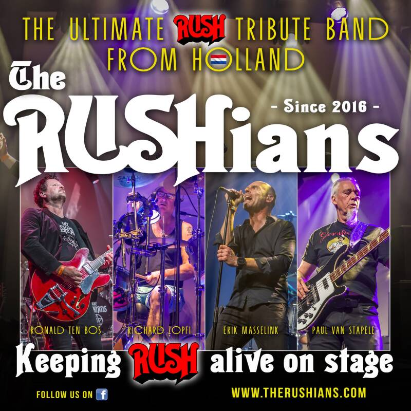 The RUSHians formed in 2016 and are since the only Dutch Tribute band for the legendary Canadian progrock band Rush. The band consists of four experienced musicians who love to share their passion for the music of Rush. The band is able to play the entire repertoire of the Canadian power trio, so the setlist can be optimally tuned to any theme or event. The philosophy of the RUSHians is to approach the live sound and energy of Rush as close as possible, so the audience has a genuine Rush live experience.